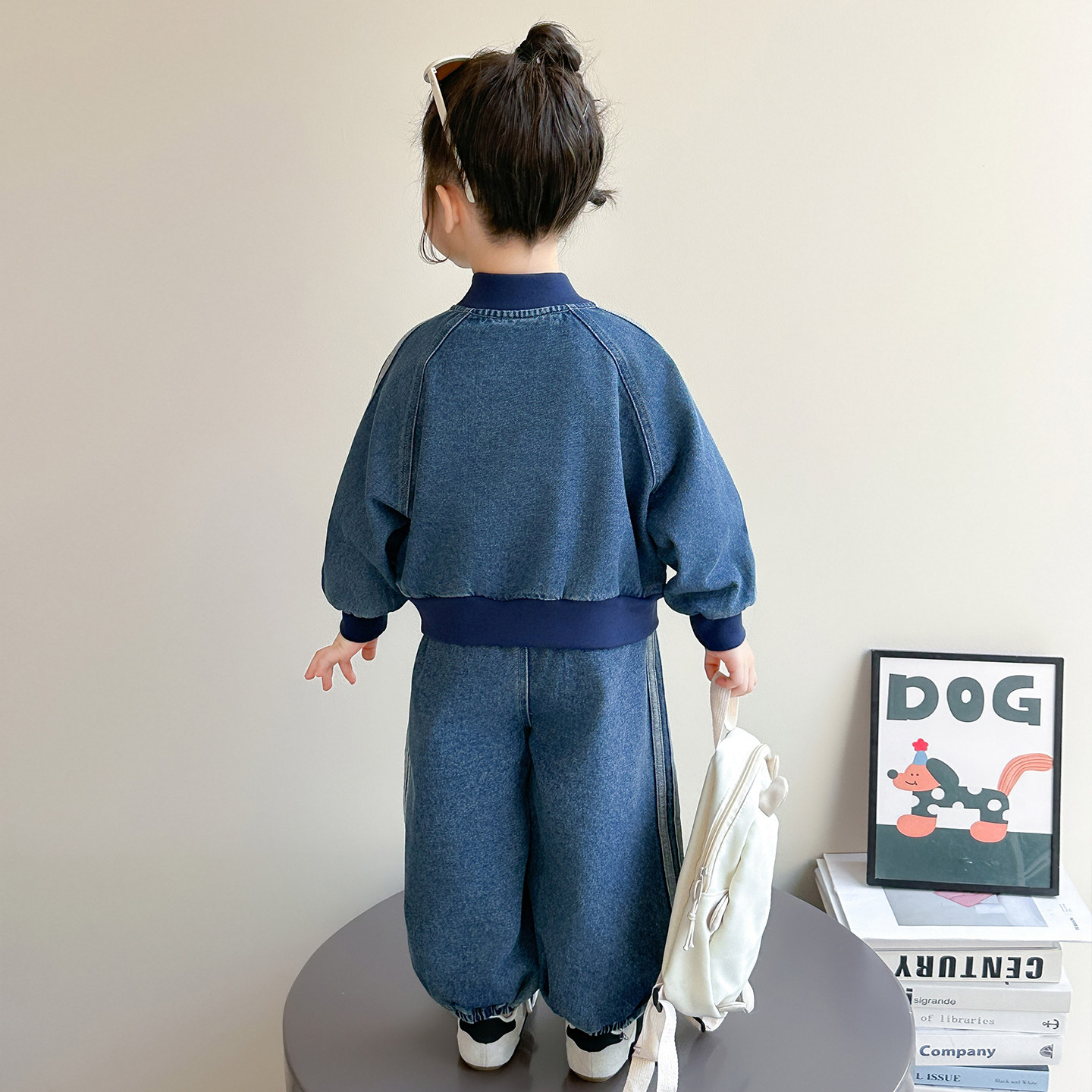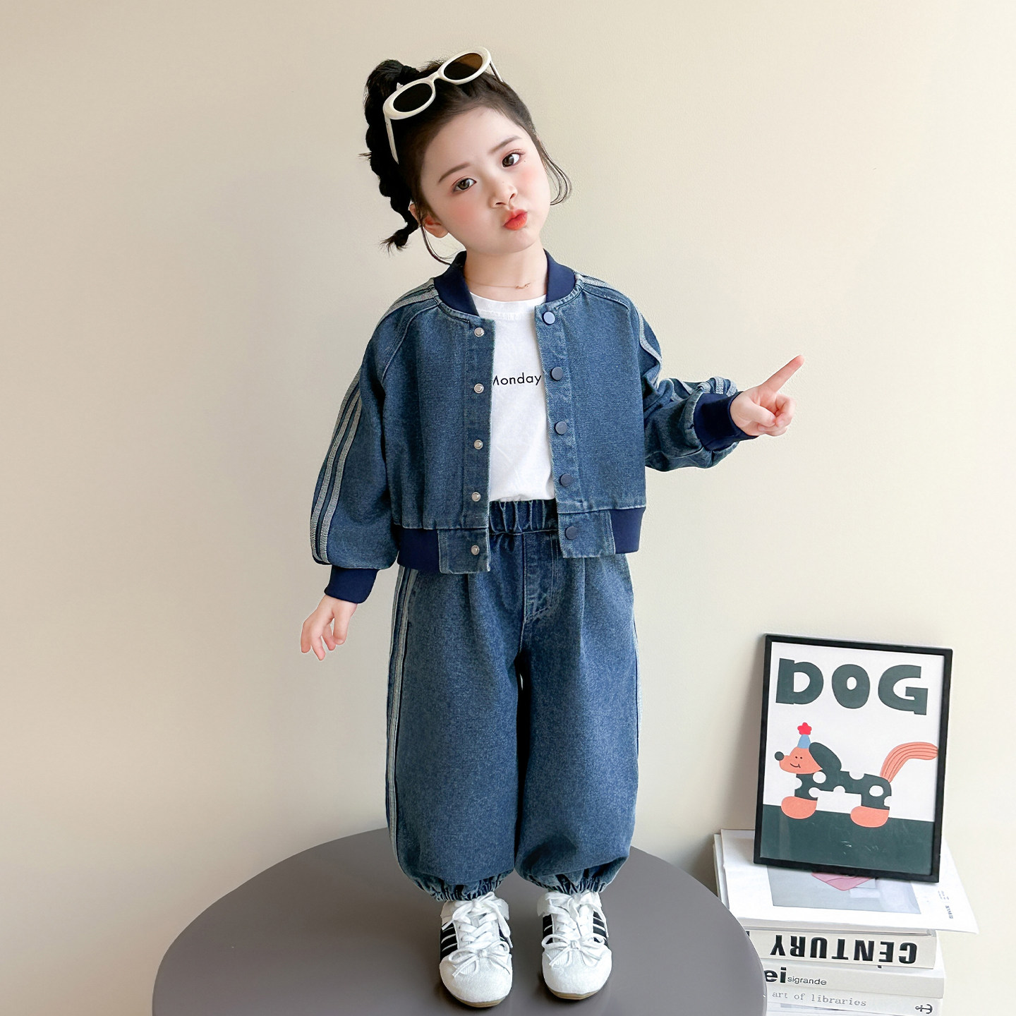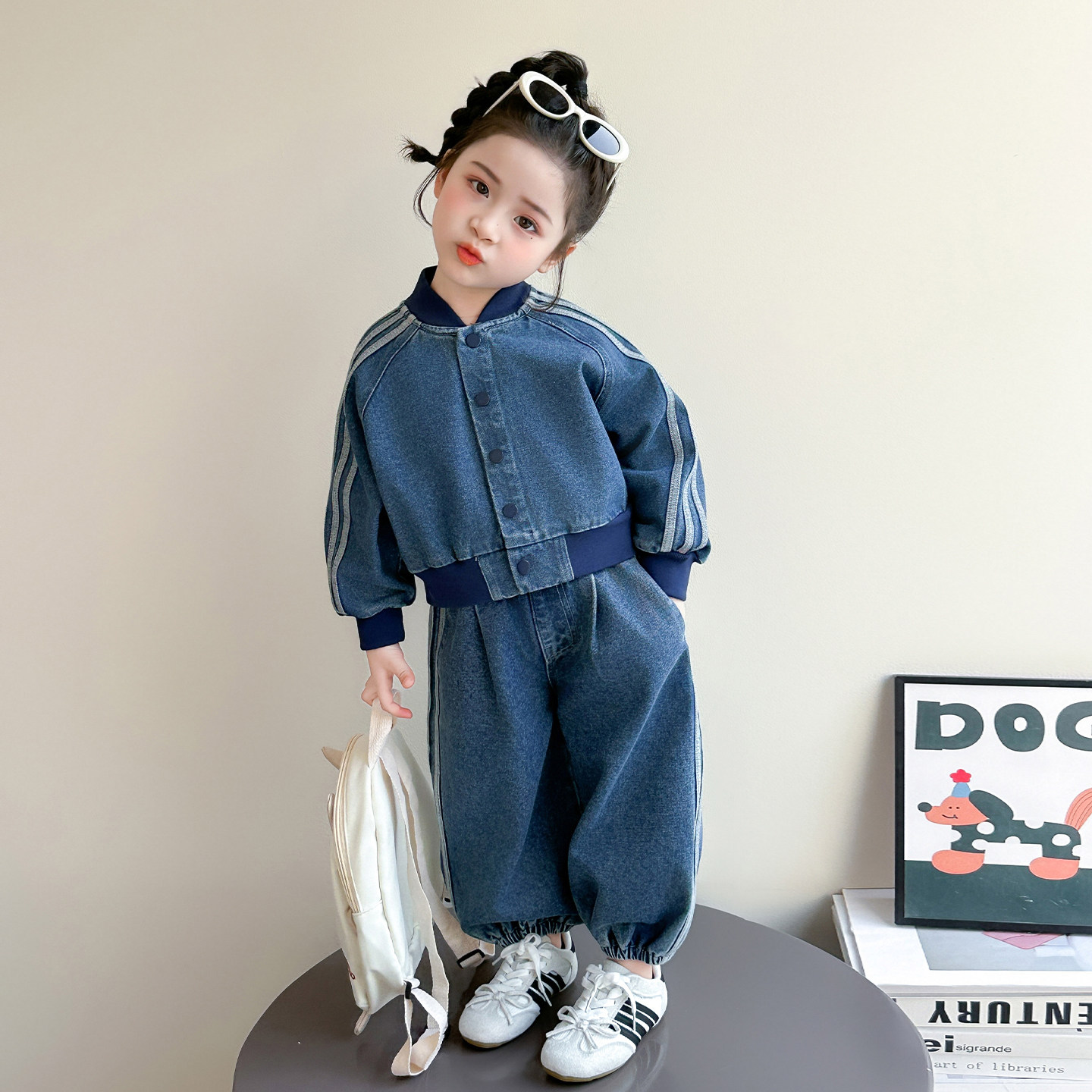 女童牛仔棒球服套装 2026新款 儿童洋气时髦春装 宝宝休闲两件套 春季由