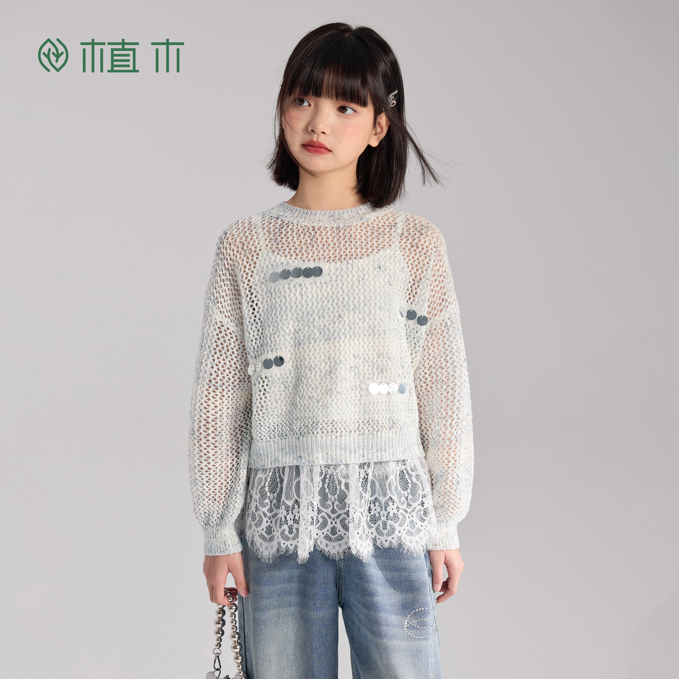 儿童针织上衣透气 植木童装 亮片呼吸感 女童毛衣 2026春夏新款由