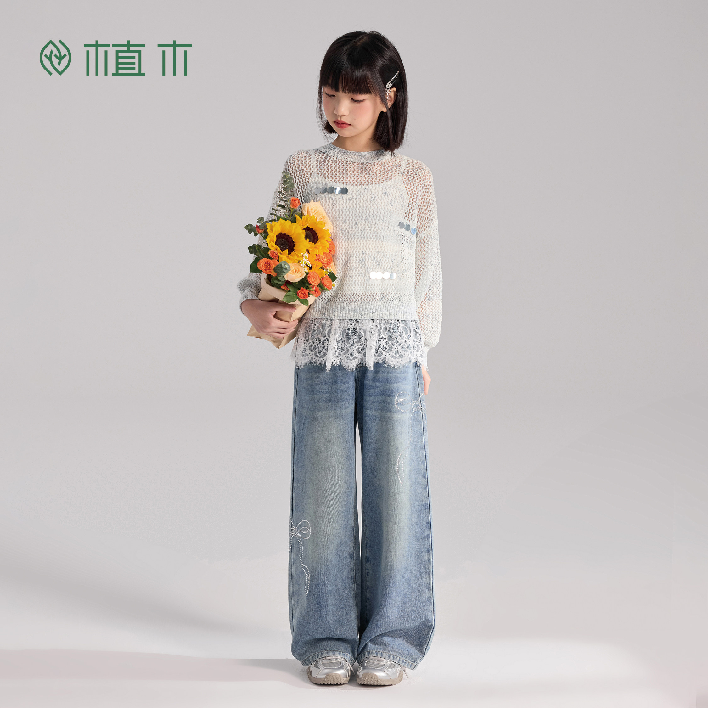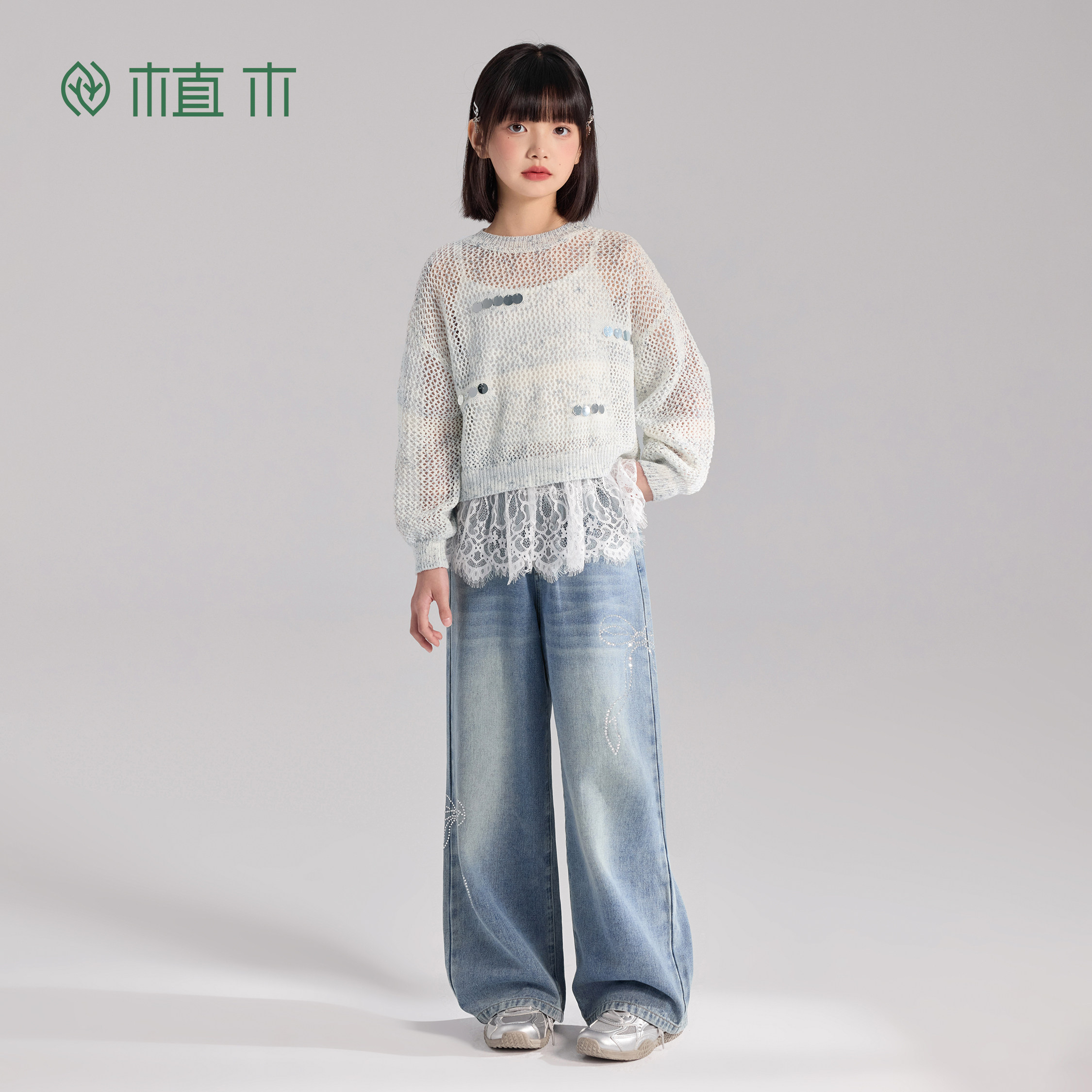 儿童针织上衣透气 植木童装 亮片呼吸感 女童毛衣 2026春夏新款
