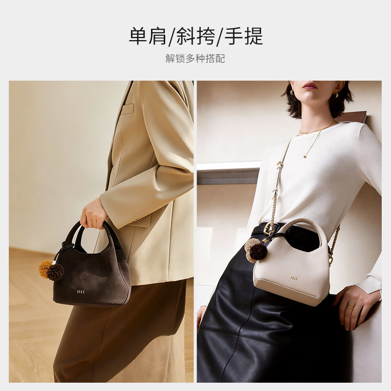 斜挎包手提黑色小包菜篮子精致通勤女士手机包 ELLE女包2026新款