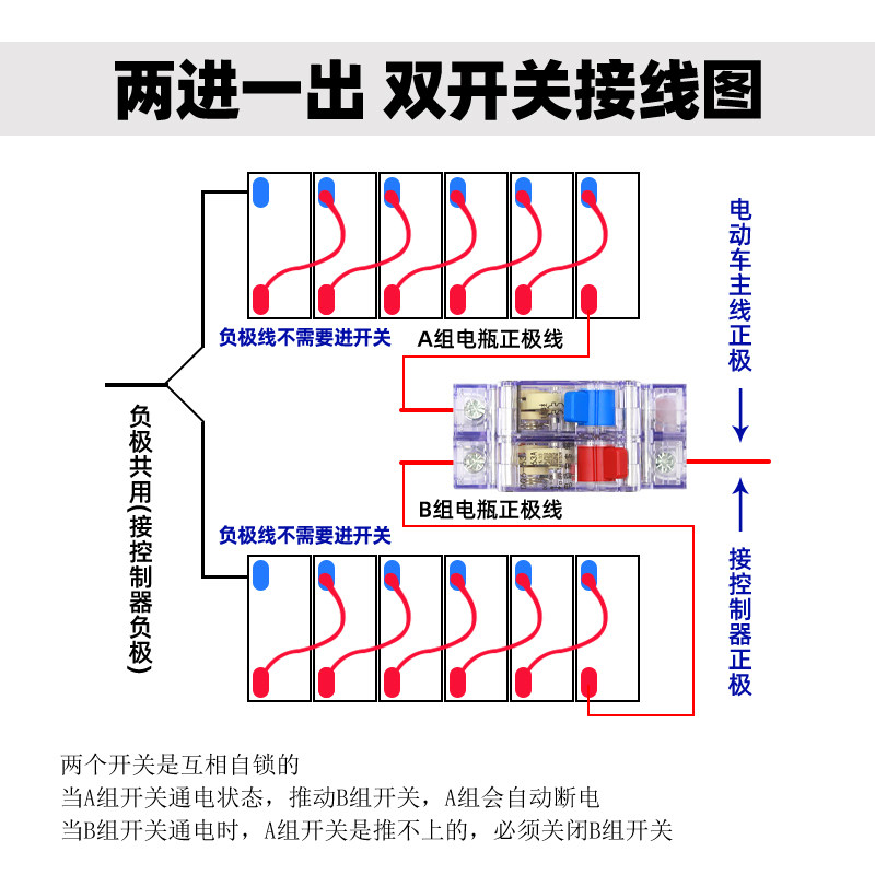 电动车2组电池切换开关24V48V72V双电池二进一出直流互锁开关100A