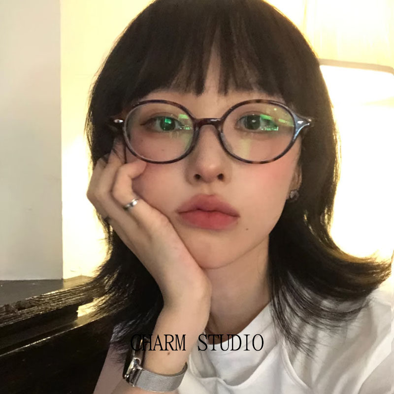 张元 眼镜框女豹纹色复古黑框书呆子可配近视度数素颜平光镜 英同款