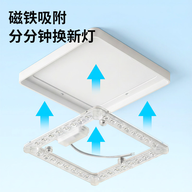 箭牌照明方形卧室吸顶灯led灯芯全光谱护眼灯板磁吸节能替换灯盘由