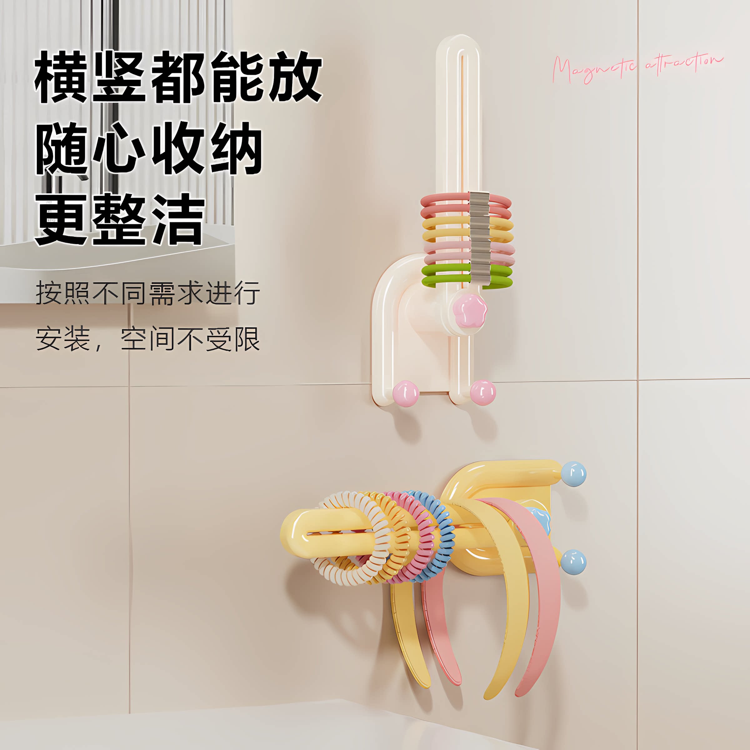 挂钩可调节发箍发圈皮筋头绳发绳收纳神器 多巴胺发饰收纳架壁挂式由