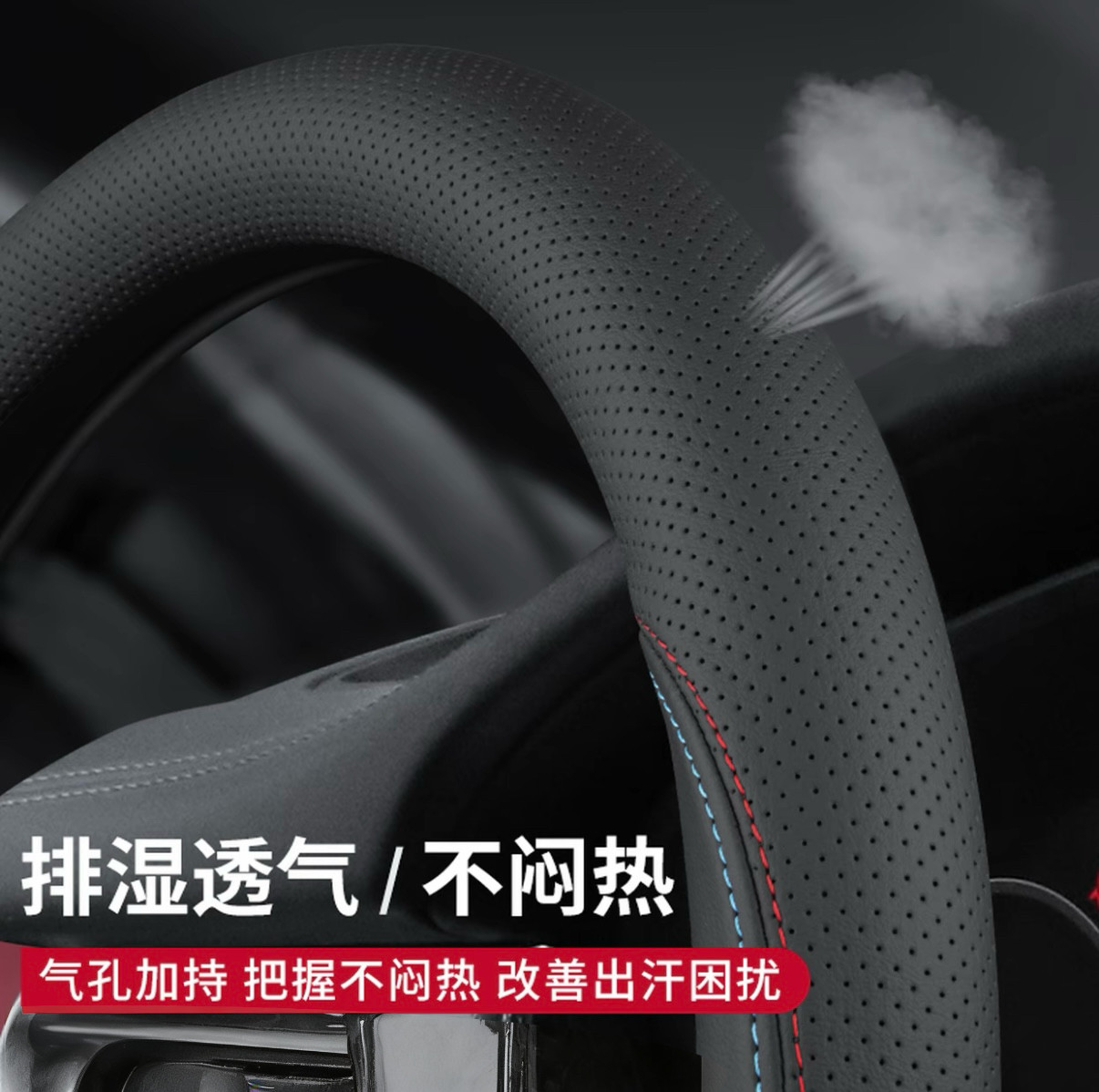 汽车方向盘套真皮夏季 通用型吸汗 超薄透气防滑方向套D型把套四季