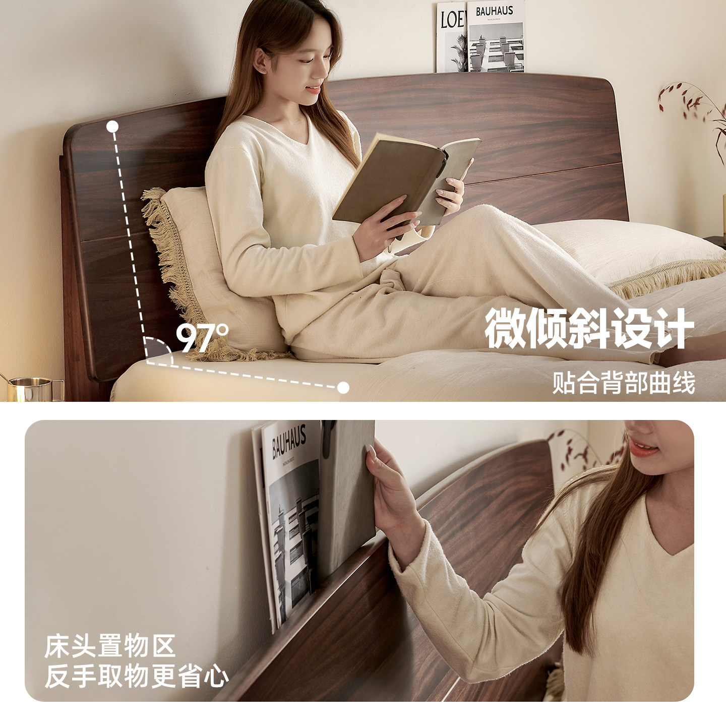 政府补贴全友家居实木床脚1米8双人床奶油原木风卧室床1米5家具