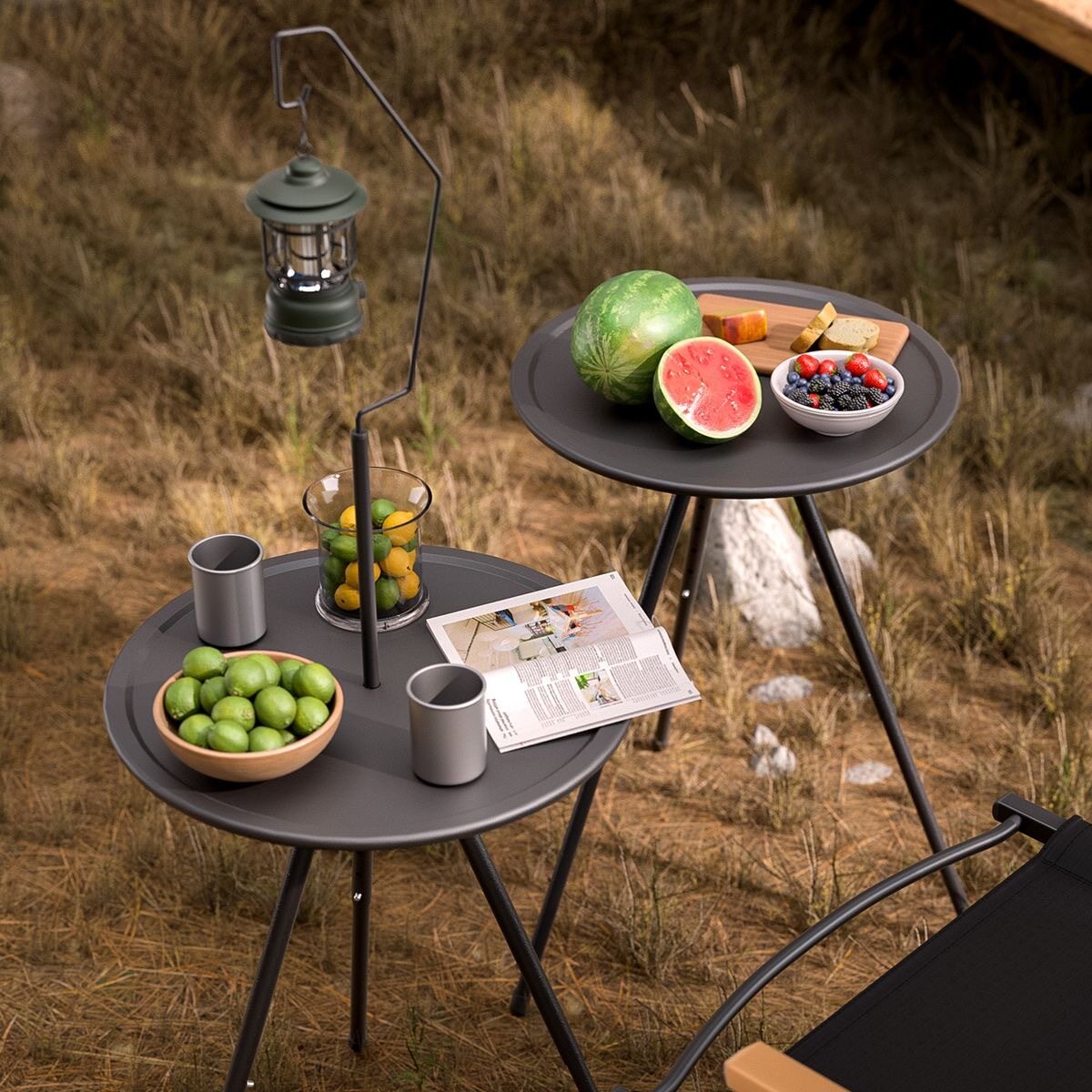 备茶几桌双层可升降带灯架 户外折叠露营桌子小圆桌野餐野营装