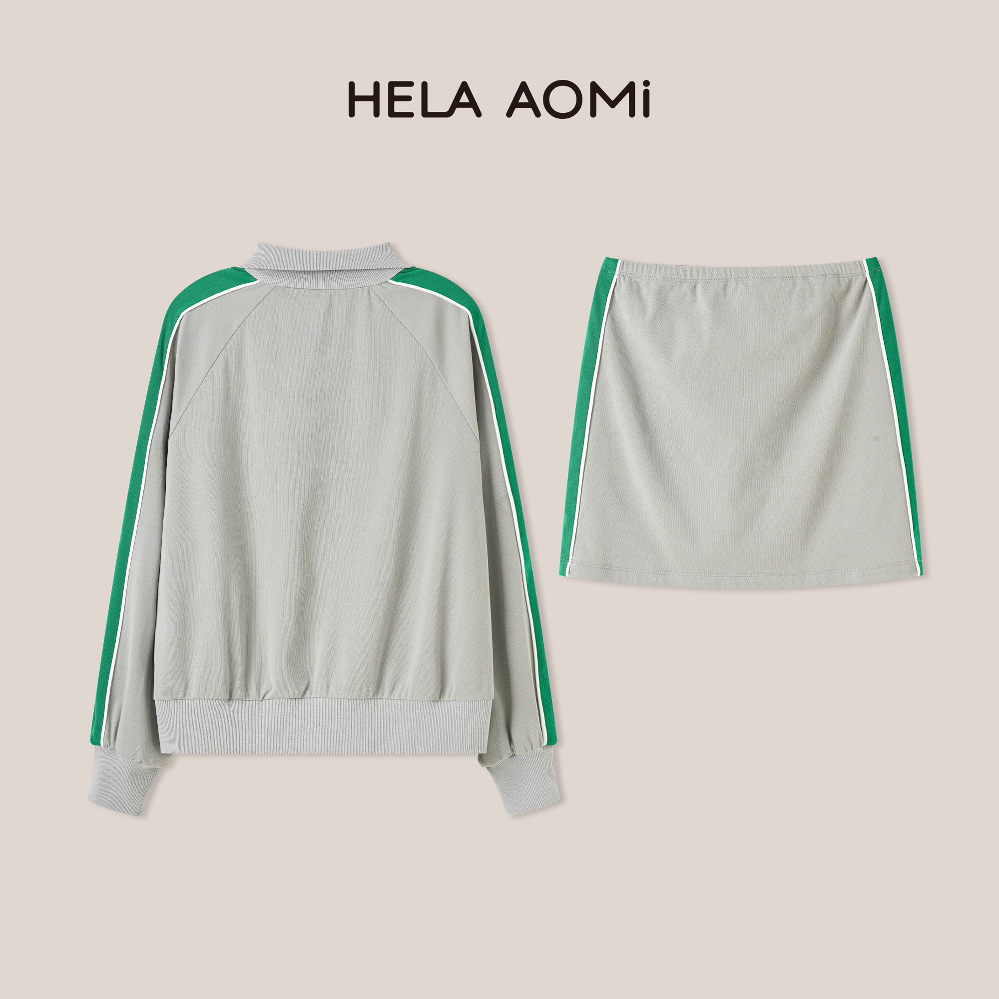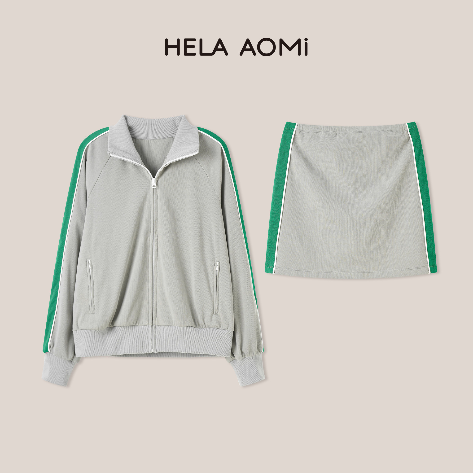 邱莹莹HELA mu系套 撞色运动风拉链外套 半裙两件套 AOMI