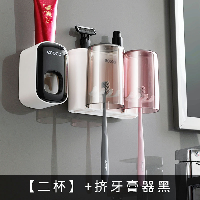 牙杯牙刷置物架化妆室免打孔洗漱杯 电动牙刷架漱口杯子家用挂墙式
