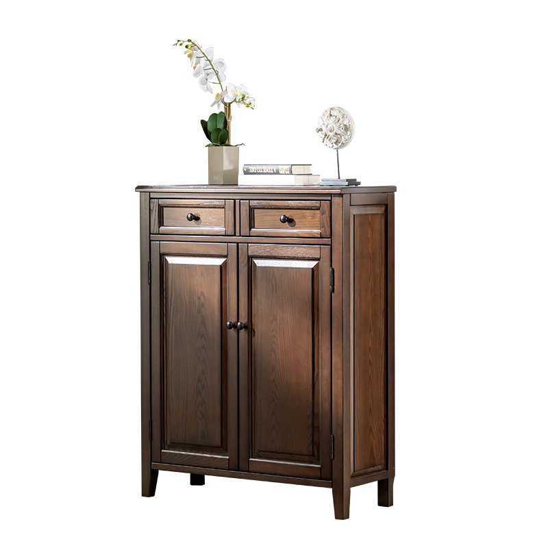 柜门厅柜鞋 架对开门玄关隔断柜 乡村家用门口全实木鞋 和年美家美式