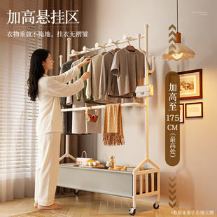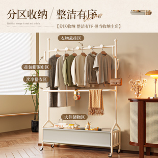 家用卧室阳台挂衣架简约 特粗双杆移动宿舍衣帽架特厚衣架落地立式