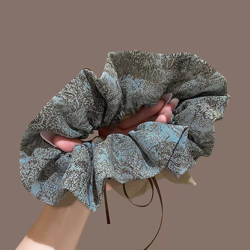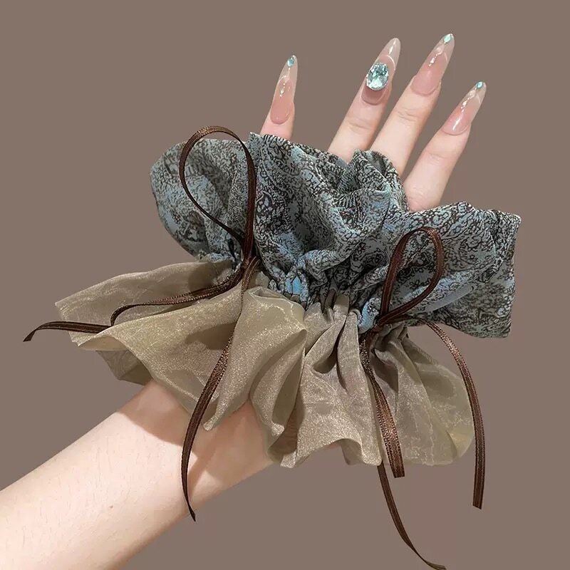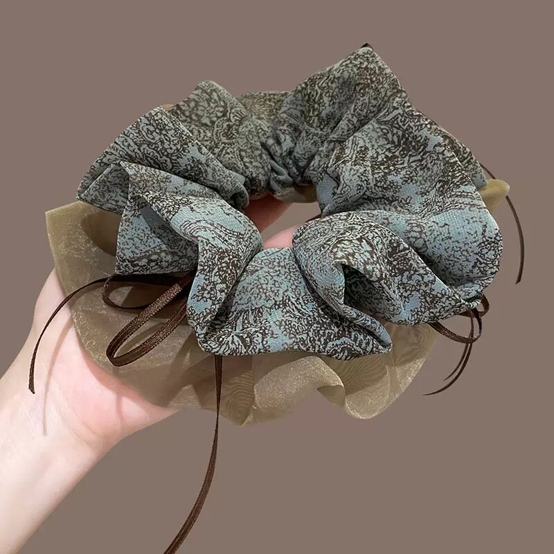 高级感丸子头头绳耐用低马尾皮筋发绳 韩国复古多层碎花肥肠圈新款由