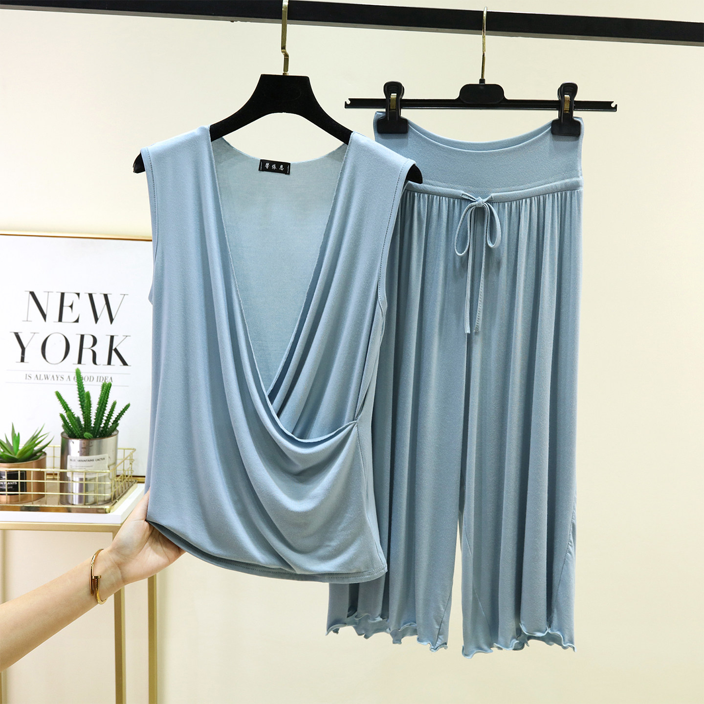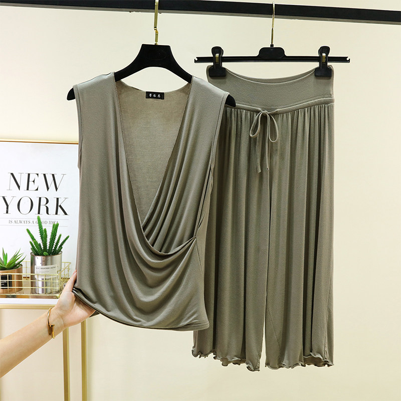 两件套女无袖 莫代尔背心背心七分裤 大码 阔腿裤 套装 T恤休闲裤 夏季由