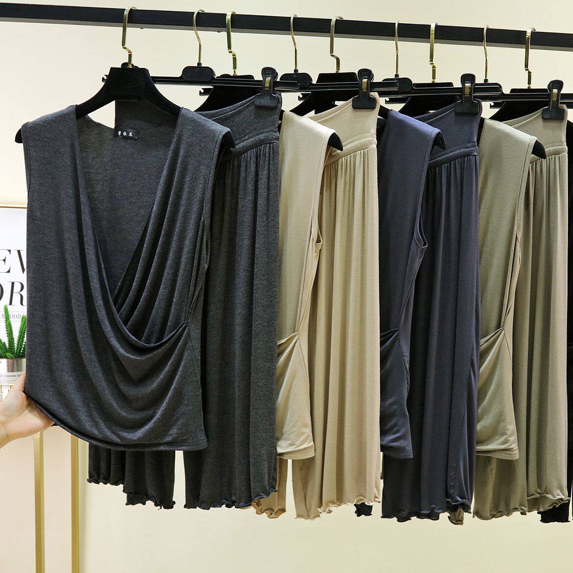 为您提供商品两件套女无袖 莫代尔背心背心七分裤 大码 阔腿裤 套装 T恤休闲裤 夏季的详细介绍,
