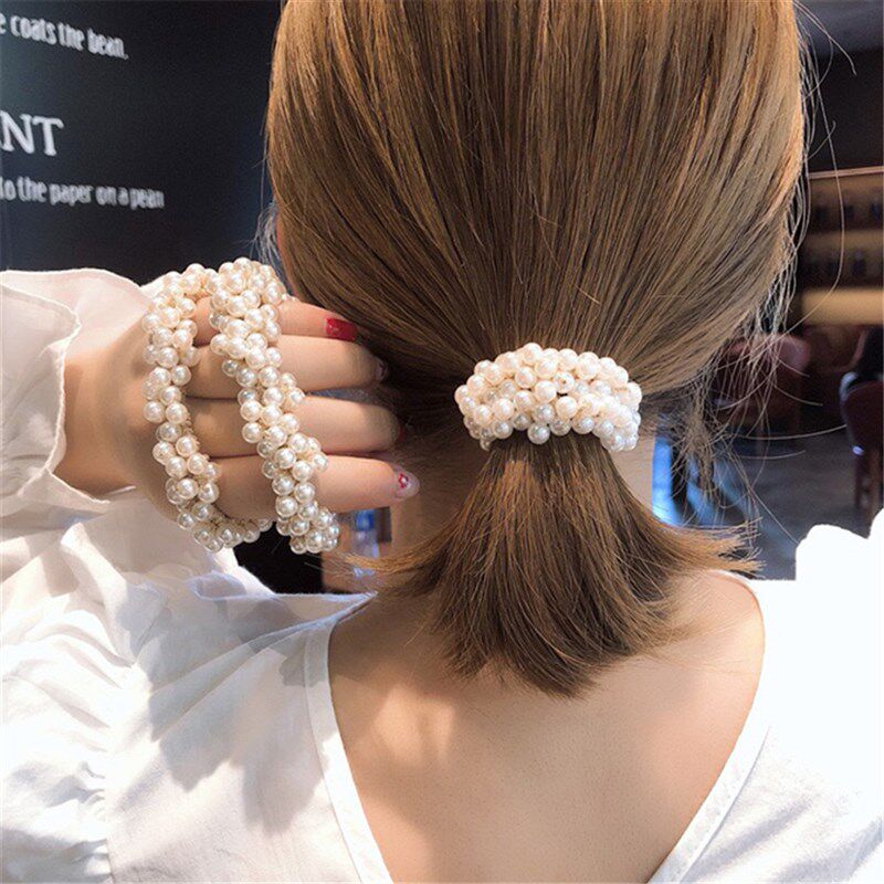 Hair Girls Scrunchie Pearl Beads Elegant Woman Colors Ties
