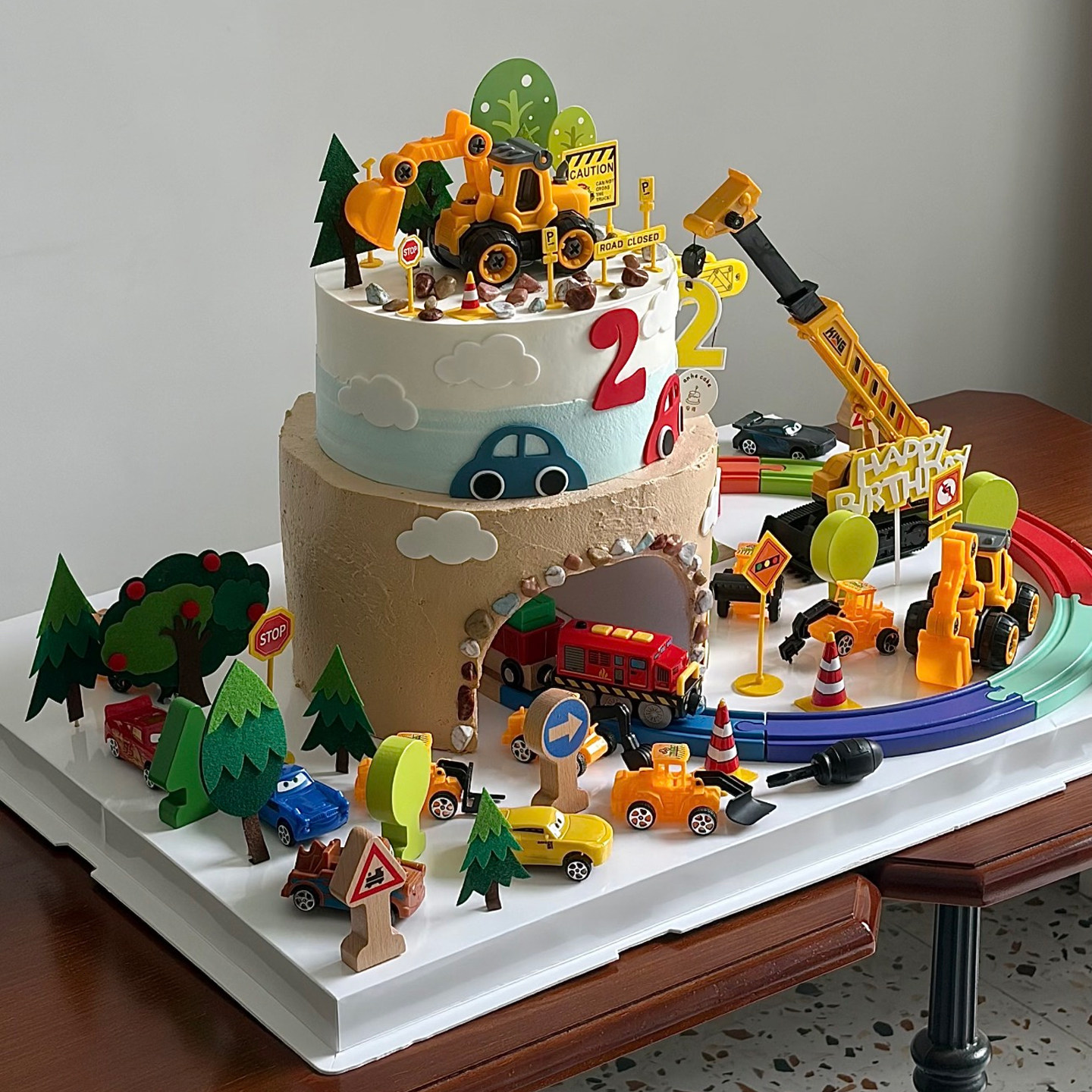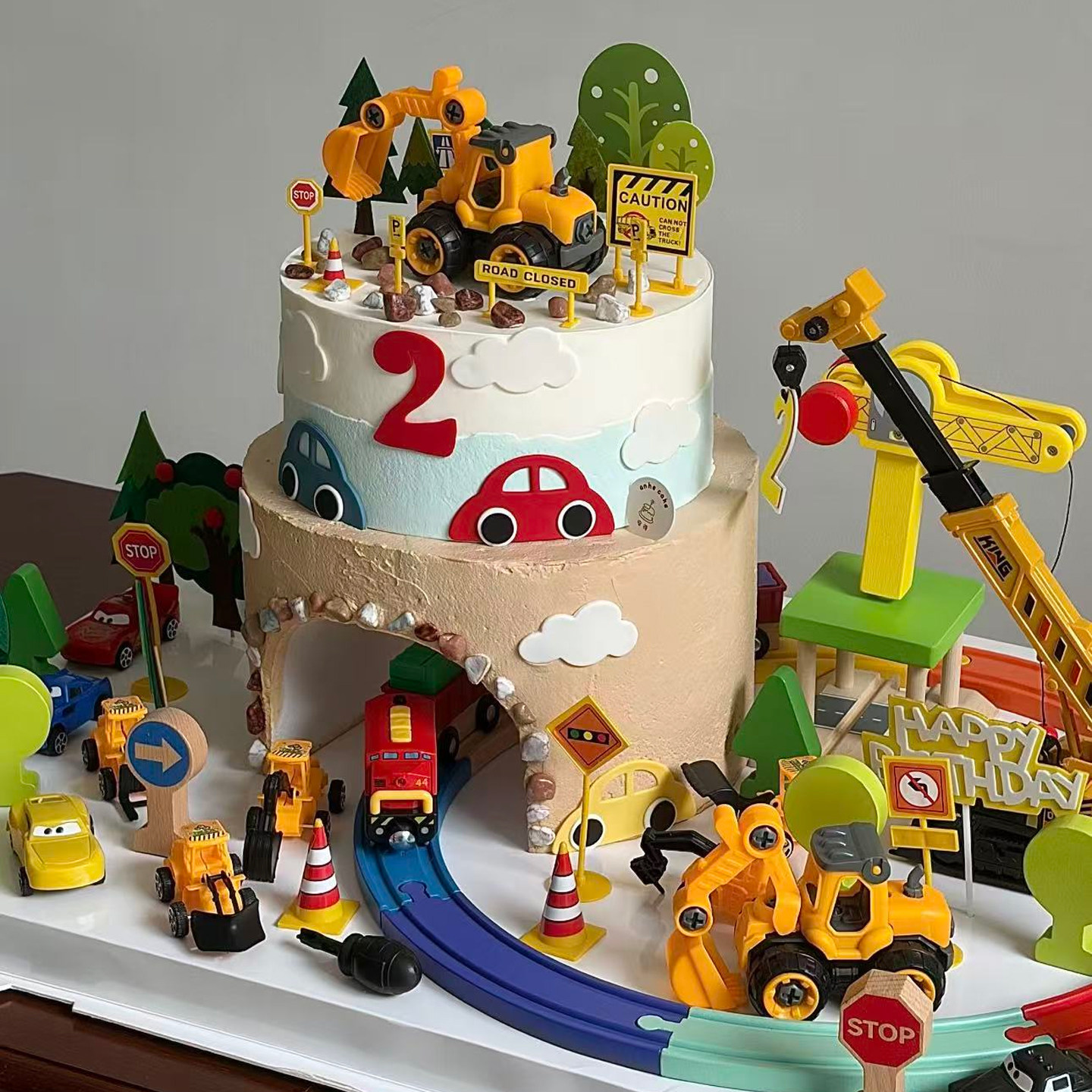 材料儿童男孩宝宝生日蛋糕装 饰小汽车摆件 火车轨道套装 小红书同款