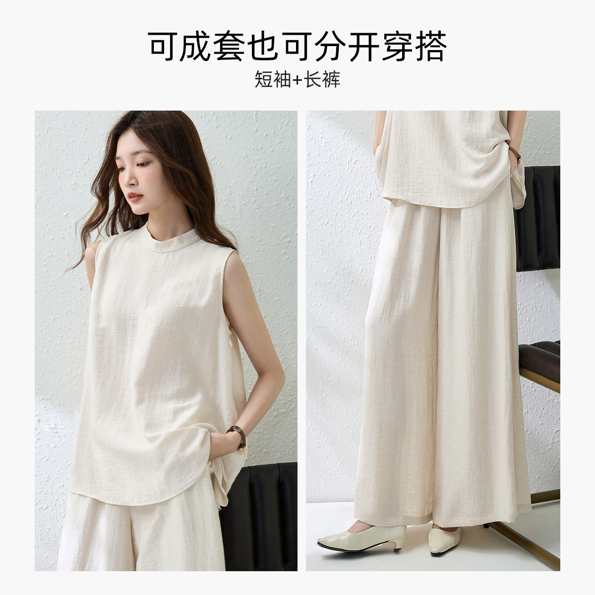 为您提供商品女装 Smen诗萌无袖 两件套2026夏季 女休闲专柜同款 背心阔腿裤 套装的详细介绍,