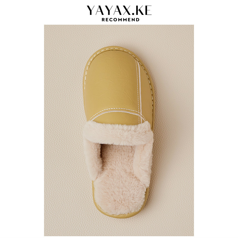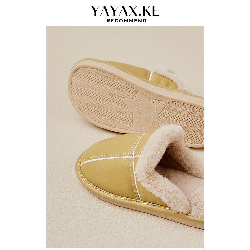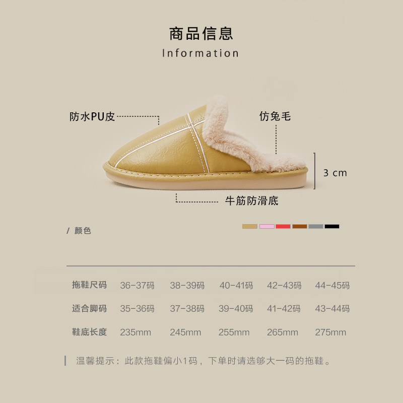 为您提供商品居家室内情侣E家用毛绒保暖防滑牛筋底拖鞋 女冬季 防水PU皮棉拖鞋的详细介绍,