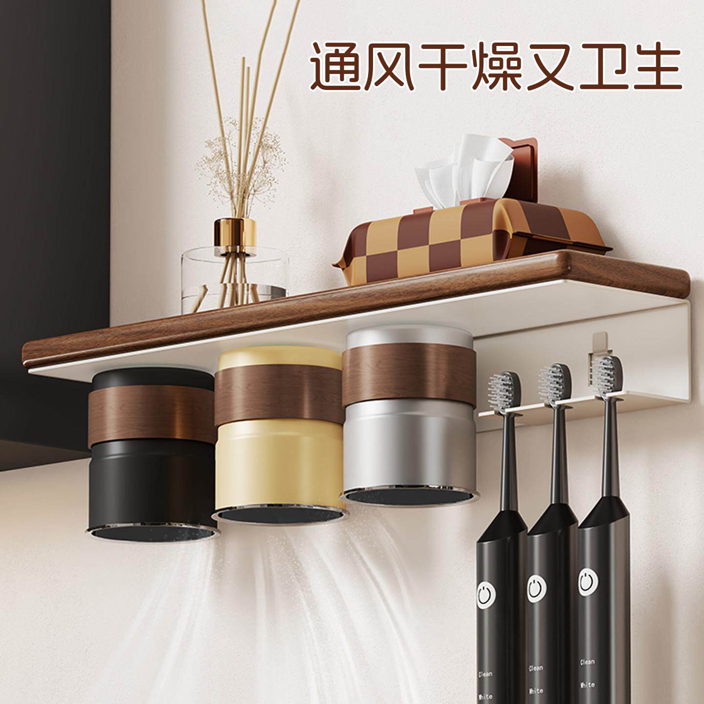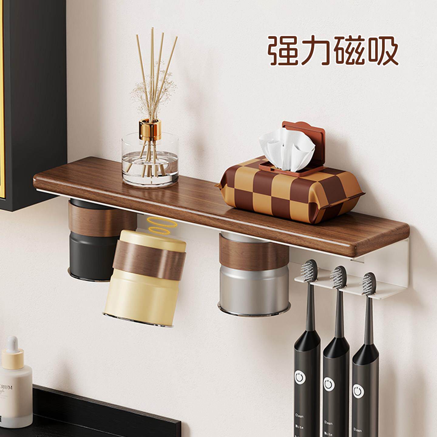 实木牙刷杯置物架化妆室壁挂式 磁吸 免打孔吹风机支架洗漱杯架套装