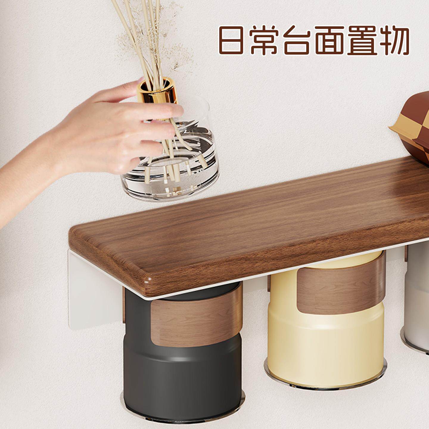 实木牙刷杯置物架化妆室壁挂式 磁吸 免打孔吹风机支架洗漱杯架套装由