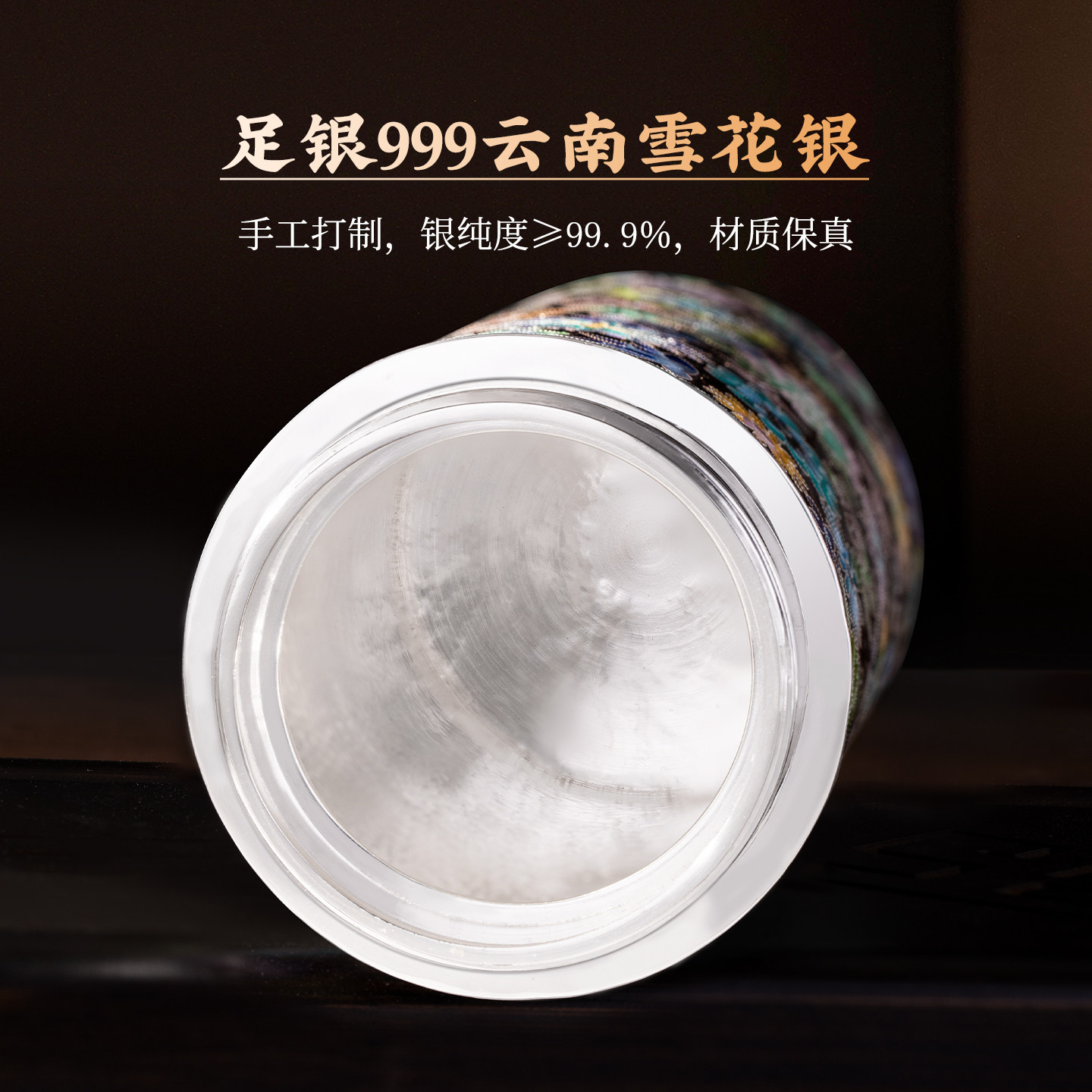 银杯子999纯银全银水杯纯手工掐丝珐琅景泰蓝足银茶杯 非遗原创