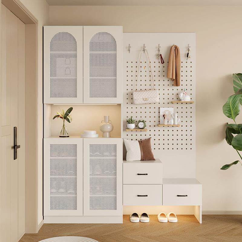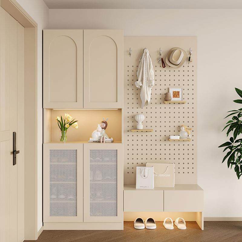 柜带坐凳一体洞洞板玄关柜家用定制门厅柜 中古奶油风入户门口鞋