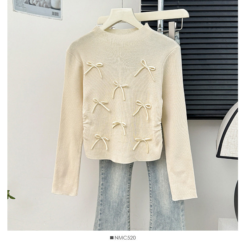 女秋季 设计感小众独特别致百搭上衣 针织衫 甜美立体蝴蝶结宽松长袖