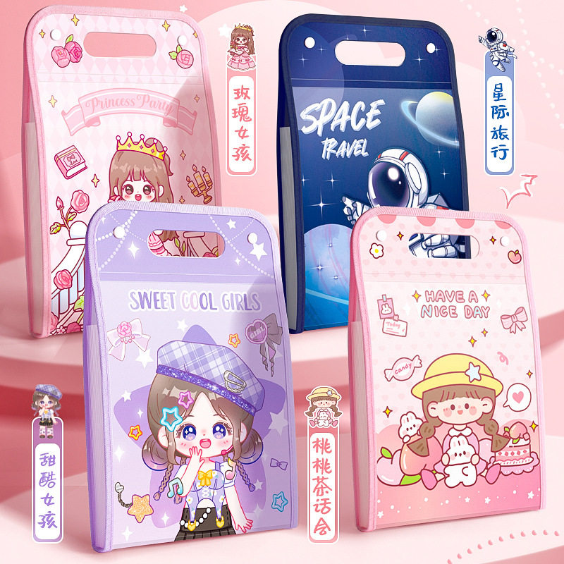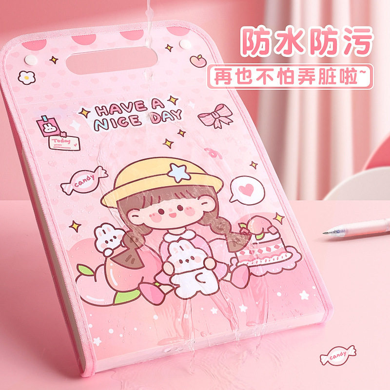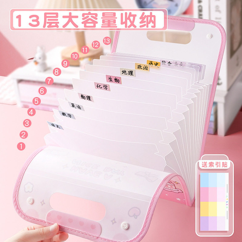 简约可爱文件夹大容量风琴包学生试卷收纳整理袋多层A4孕检证件册