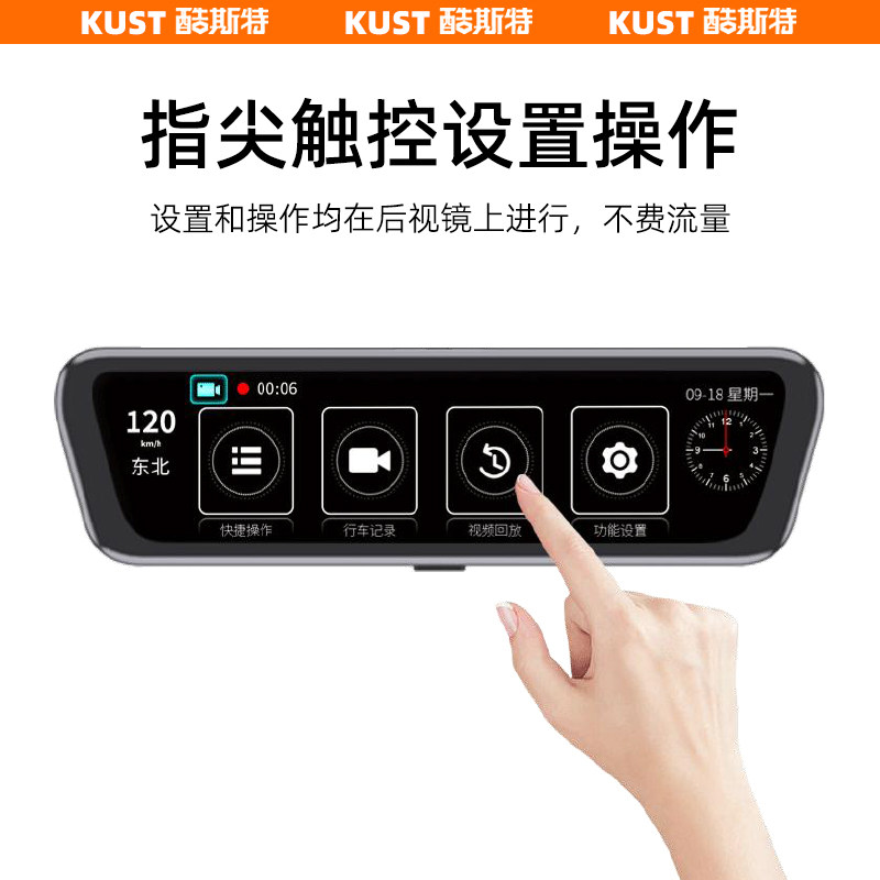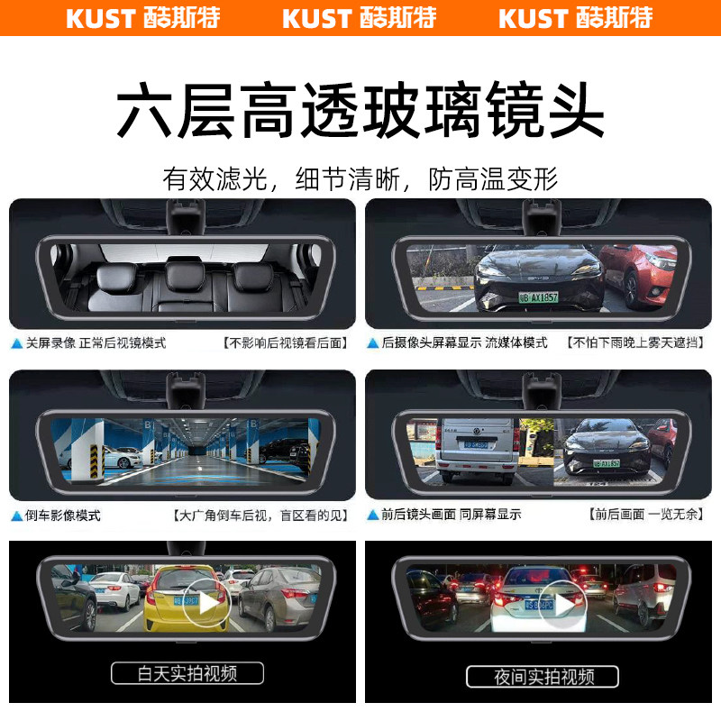 iCAR超级V23流媒体电子后视镜行车记录仪高清前后双录影像改装