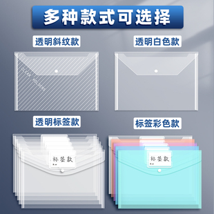 得力透明文件袋加厚文件夹档案袋分类按扣资料袋塑料防水A4学科袋学生科目袋收纳试卷袋按扣袋a4 50个装