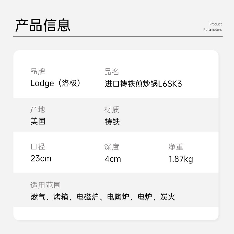 为您提供商品煎炒焗烤全能 L6SK3 美国进口无涂层铸铁小煎锅23cm Lodge洛极的详细介绍,