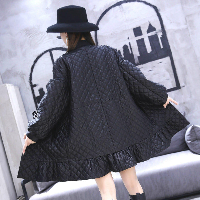 皮衣女中长款 绵羊皮韩版 皮夹克真皮加棉灯笼袖 风衣外套 2025秋新款由
