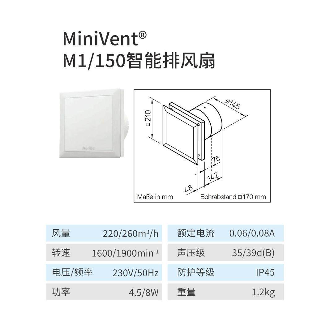 为您提供商品220风量卫生间换气扇 德国进口节能防水静音M1智能排风扇强力260的详细介绍,