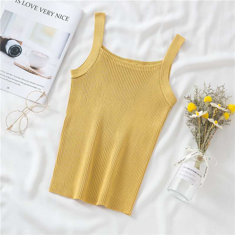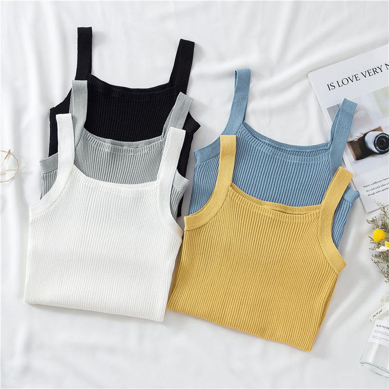 针织吊带背心女内搭打底短款 性感显胸韩版 无袖 上衣夏 外穿平口西装