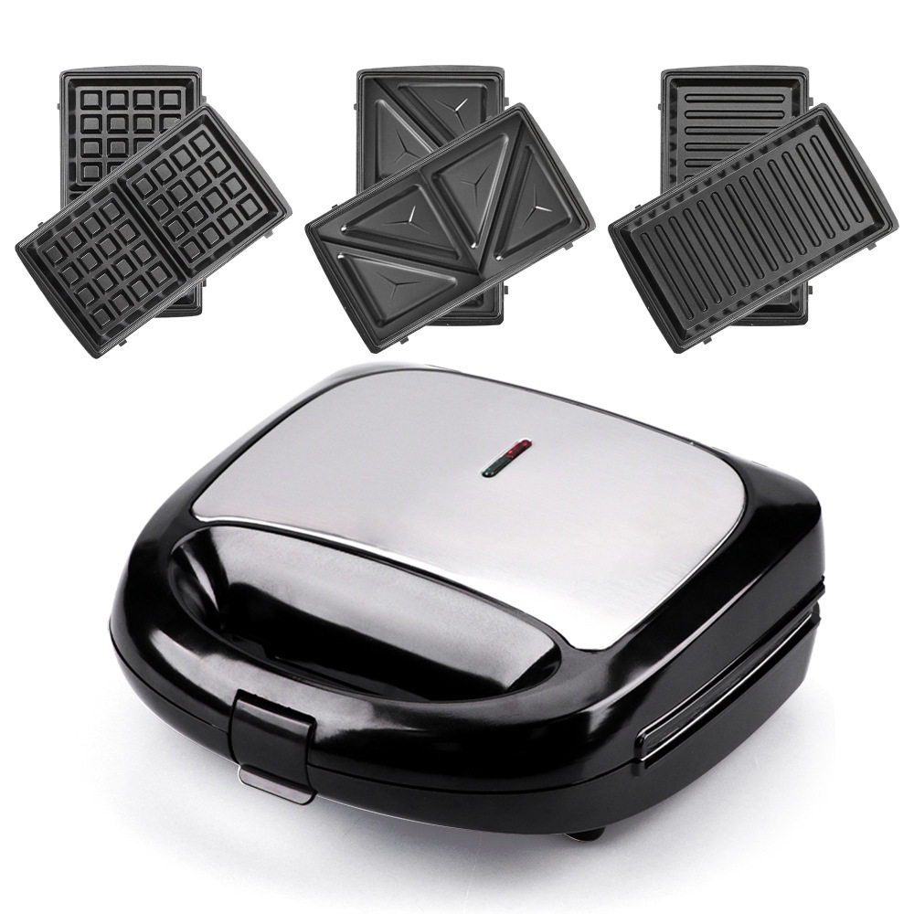 家用不锈钢三明治机3in1可换板华夫饼面包机欧规多功能牛排早餐机由