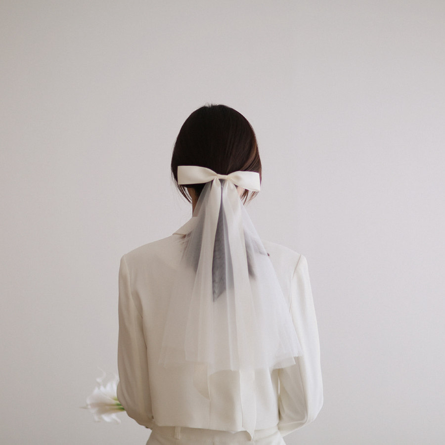蝴蝶结短款 白色小头纱领证登记 头纱新娘头饰网红拍照求婚道具法式