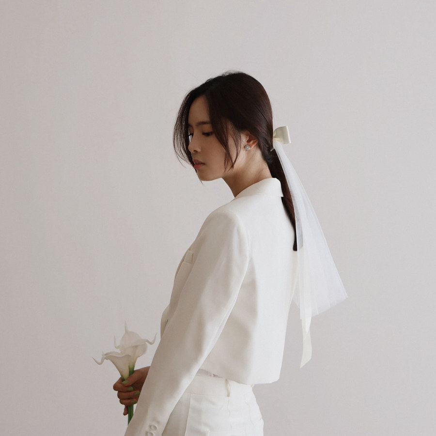 蝴蝶结短款 白色小头纱领证登记 头纱新娘头饰网红拍照求婚道具法式由
