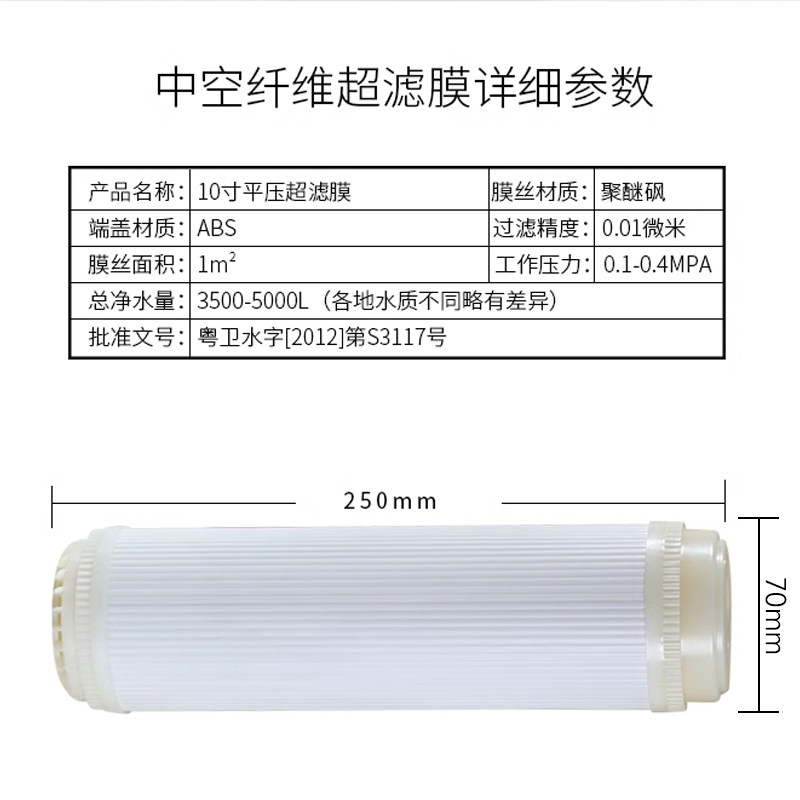 为您提供商品通用 10寸超滤膜中空纤维膜滤芯uf净水器0.01微米净水机平口平压式的详细介绍,