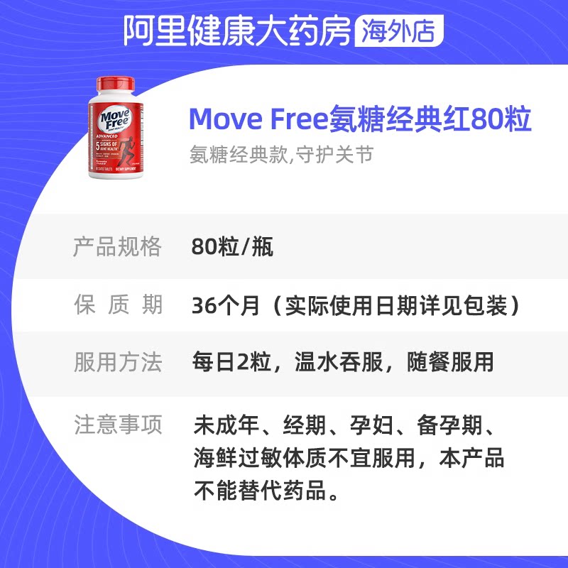 为您提供商品Free氨糖软骨素美国进口关节健康运动关节红瓶氨糖80粒 益节Move的详细介绍,
