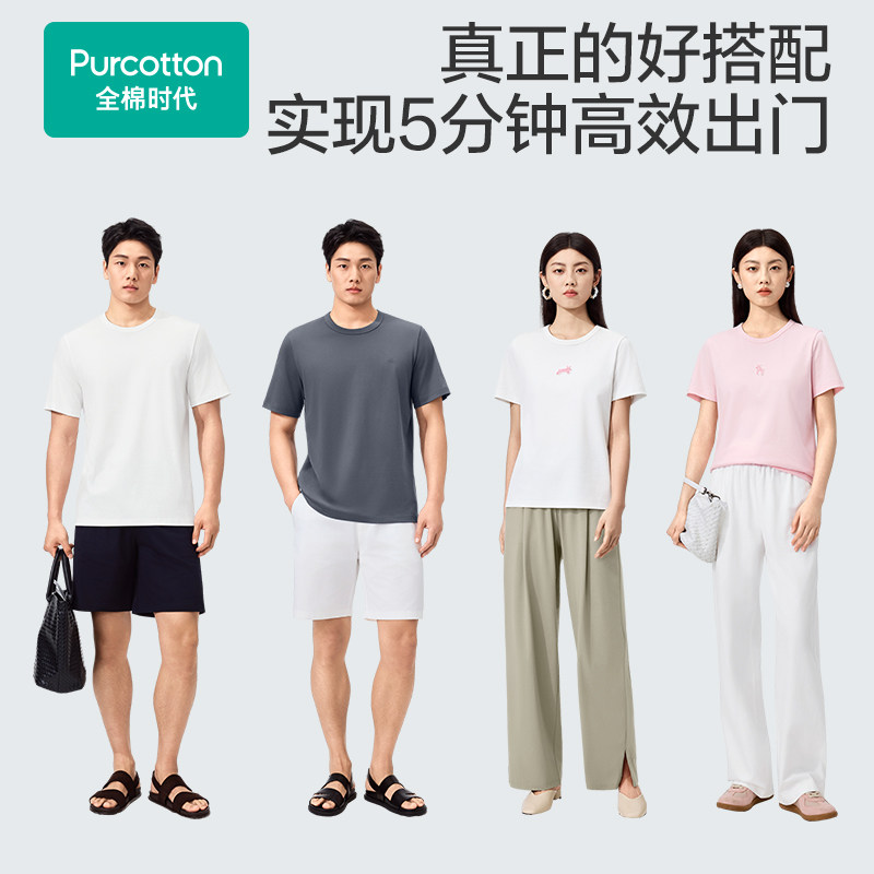 全棉时代女士短袖 上衣女士凉感水光棉T恤夏装 纯棉T 张凌赫同款