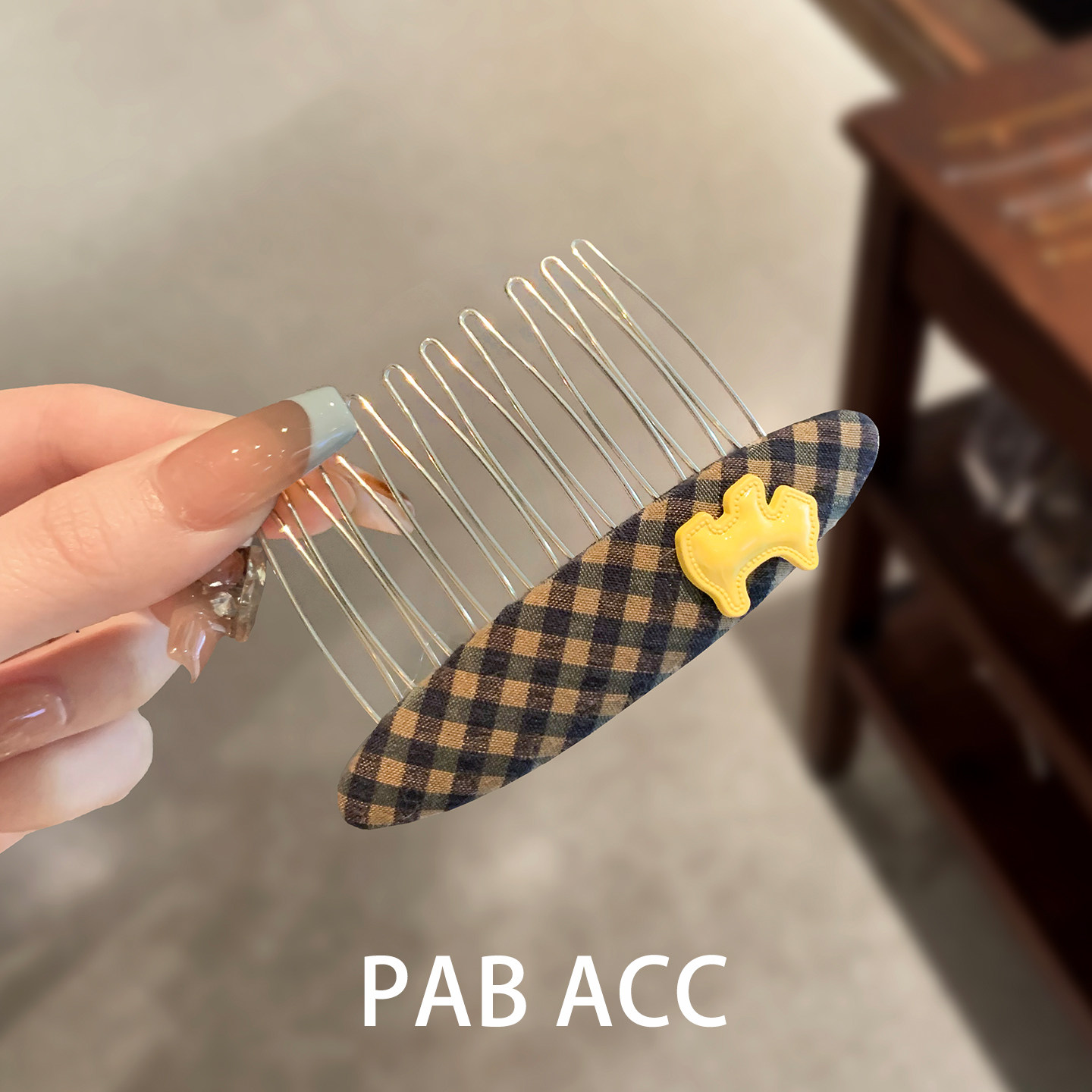 韩国小众可爱萌宠立体小马撞色格纹发梳整理碎发插梳刘海发卡头饰