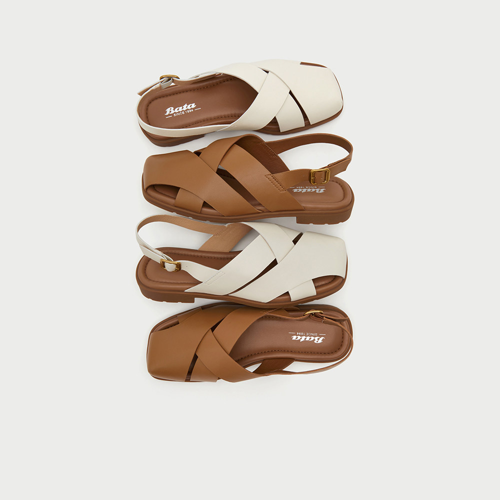 Bata罗马凉鞋 时尚 复古方头休闲羊皮凉鞋 ARP51BH6 女2026夏商场新款由