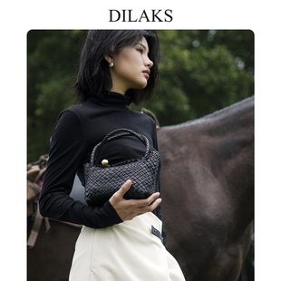 女包羊皮编织包真皮hobo包通勤百搭单肩斜挎包 DILAKS迪莱克丝正品由