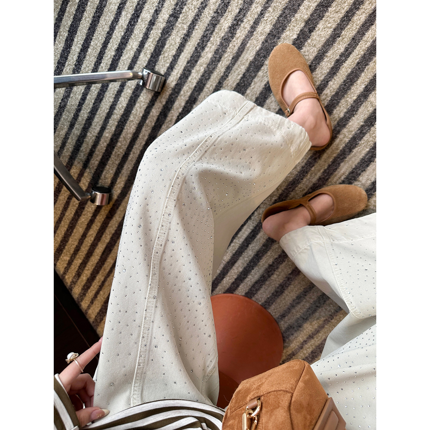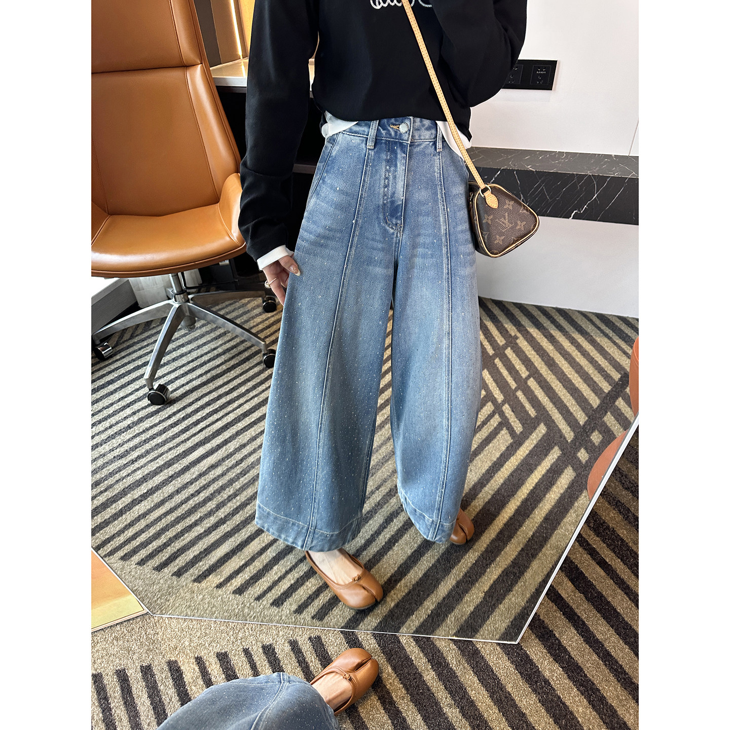 腿型救星 女2026新款 宽松细闪带钻牛仔裤 小个子九分阔腿气球裤