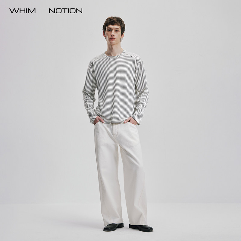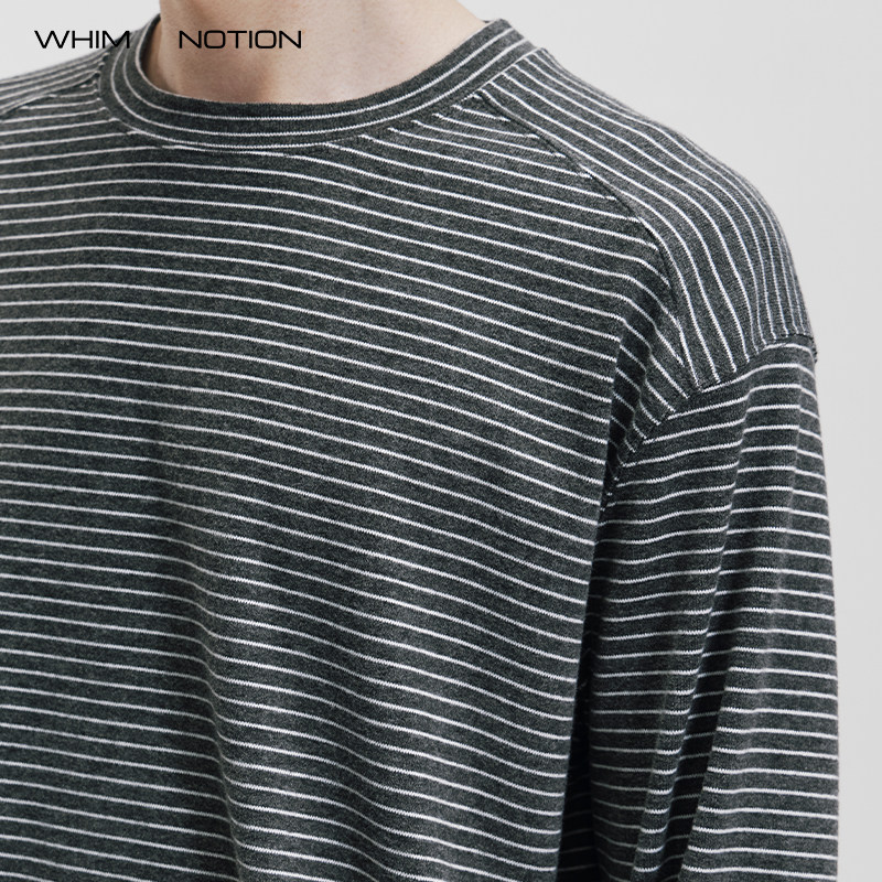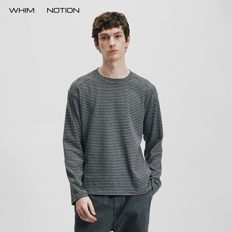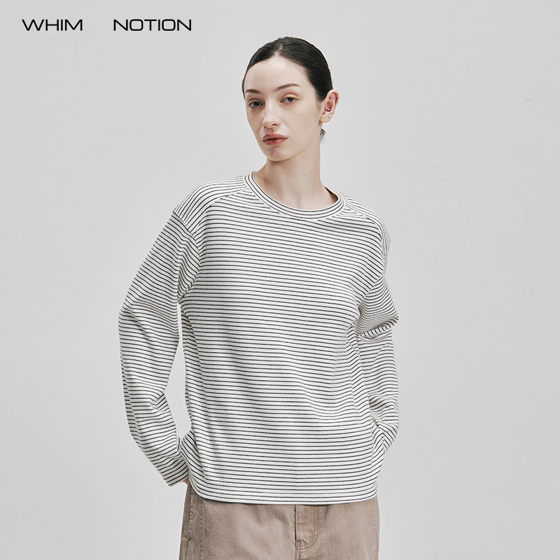 WHIMNOTION 休闲百搭T恤 26SS「慵懒松弛」肩部错位条纹圆领长袖由