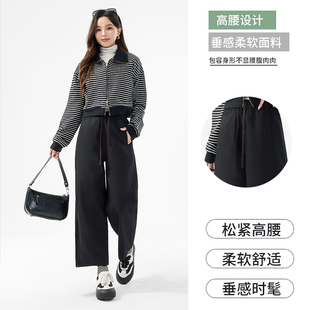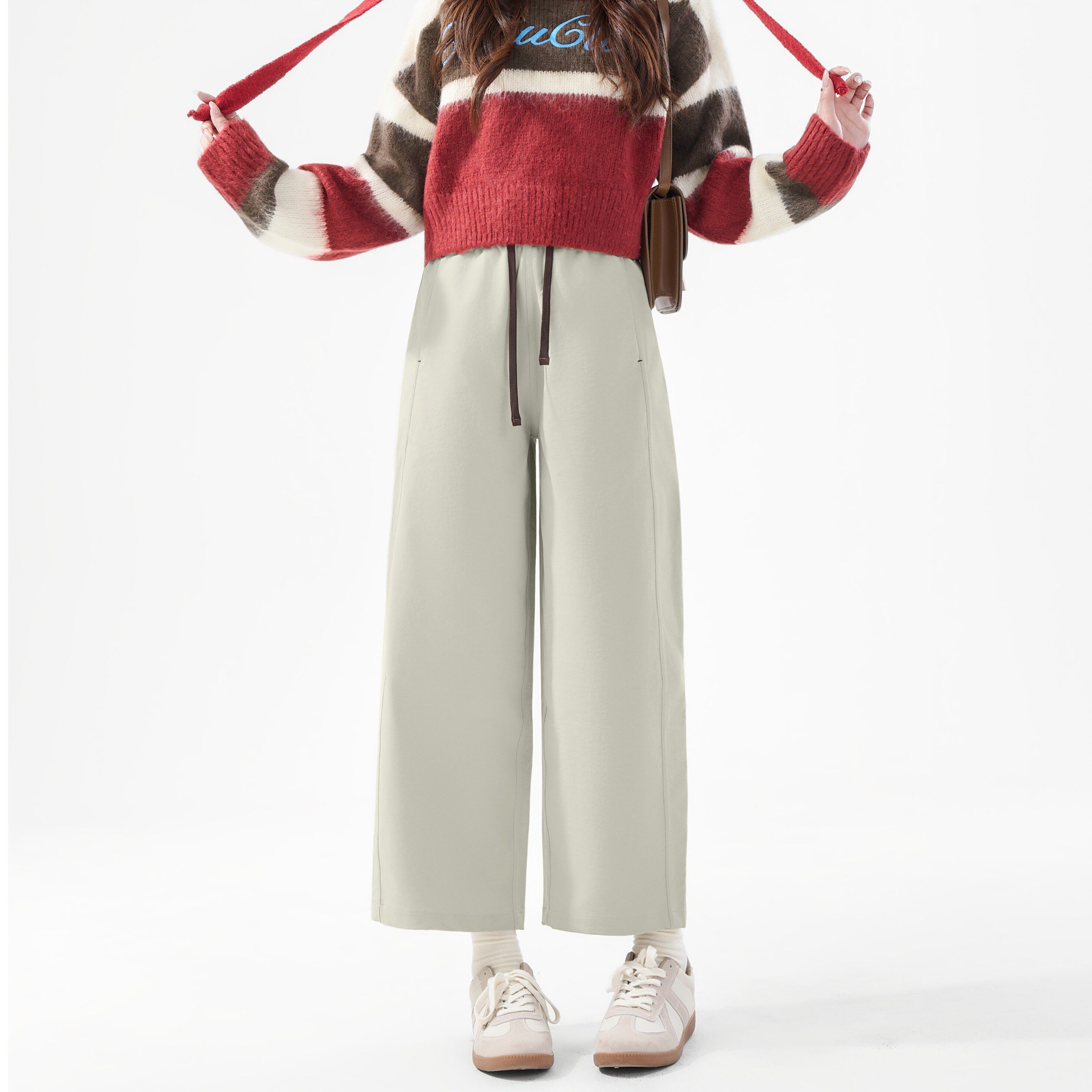 2026新款 女面膜空气层阔腿裤 高腰收腹垂顺显瘦休闲裤 直筒裤