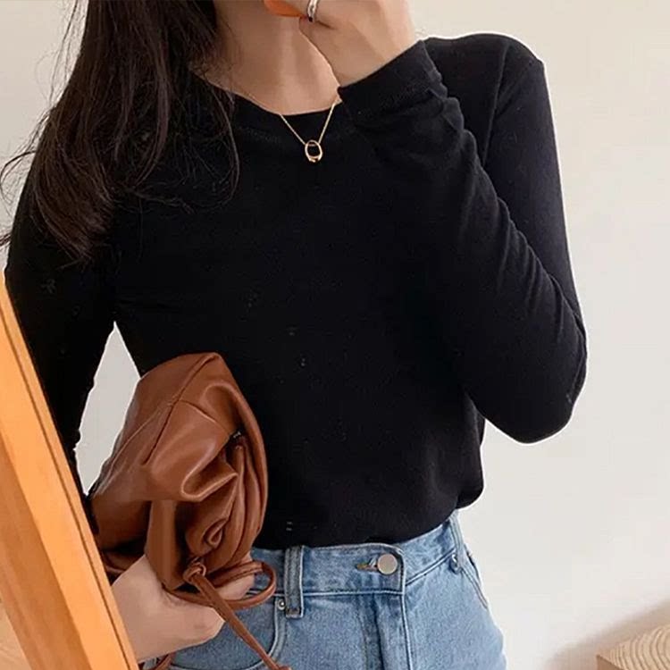 简约正肩白色打底衫 内搭双面德绒保暖西装 长袖 t恤百搭 女韩版由