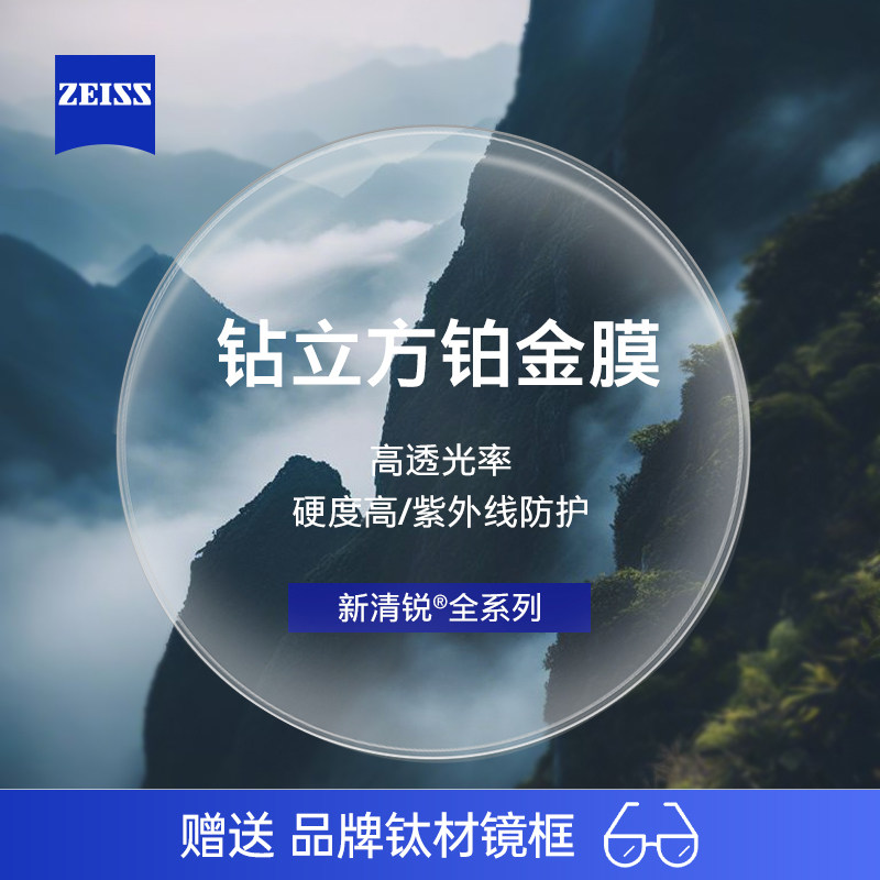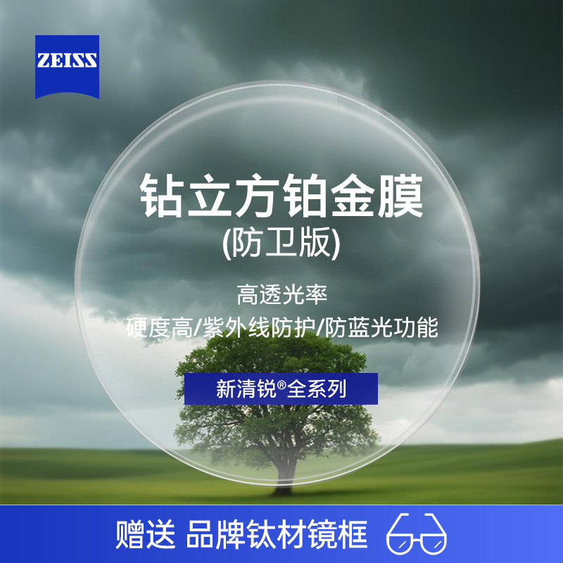 蔡司泽锐镜片钻立方PLUS防蓝光1.74超薄铂金膜近视镜片变色定制