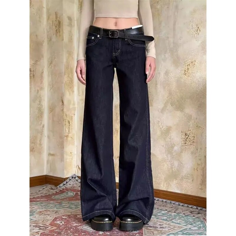 ⭐小红书推荐⭐港式 都市风微喇水洗深蓝色牛仔裤 女小个子低腰显高显瘦宽松喇叭裤,所属牛仔裤分类,由淘宝网挑选推荐!小红书抖音网红同款!哪里有卖港式 都市风微喇水洗深蓝色牛仔裤 女小个子低腰显高显瘦宽松喇叭裤和多少钱质量怎么样✅。