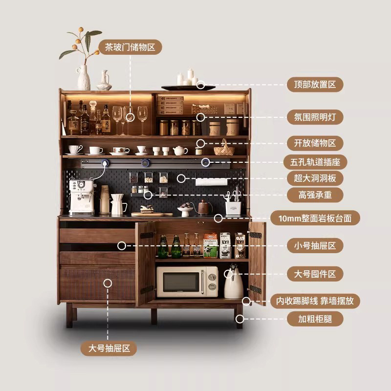 水墨兰亭2026新款 复古岩板储物柜 黑胡桃木餐边柜实木客厅家用法式